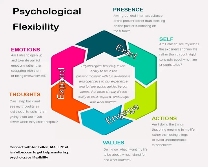 Ian Felton (2021). Psychological flexibility: https://www.ianfelton.com/post/psychological-flexibility